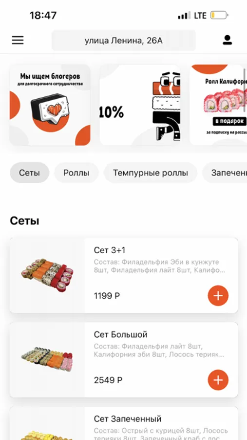 Приложение для заказа еды из ресторана Ёмое