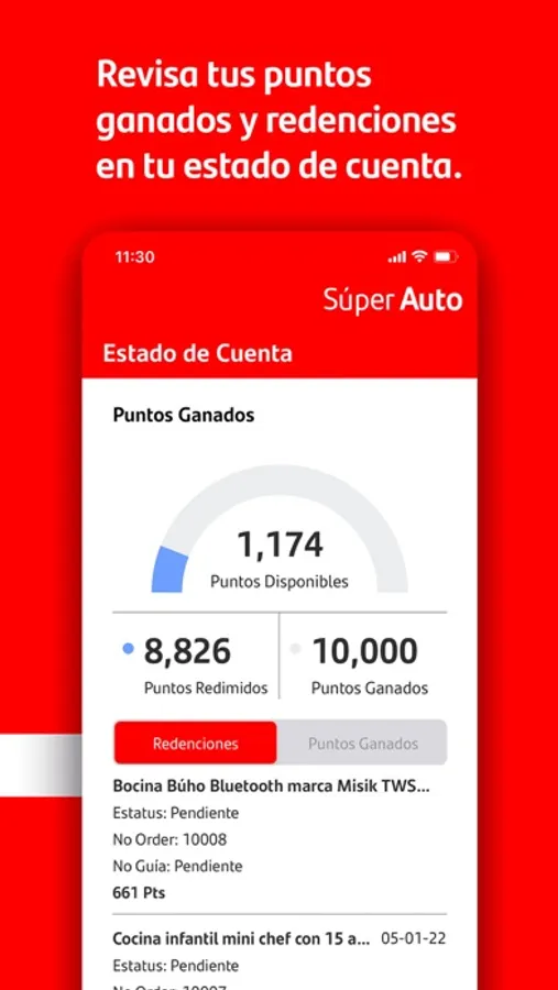 Estado de cuenta. En esta sección podrás dar seguimiento a tus canjes, visualizando sus estatus de envío y tendrás la posibilidad de observar cuántos puntos has gastado y cuántos están disponibles para tus futuros canjes.