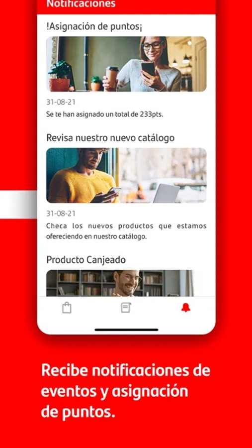 Notificaciones. Recibirás comunicados importantes acerca de tus canjes, asignaciones de puntos y promociones entre otros.