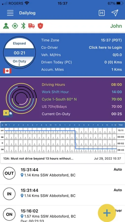 Hours of Service violations and alerts are calculated as per selected USA or Canada HOS rules. The PAYD ELD keeps you worry-free and saves you and your company from fines and CSA scores.