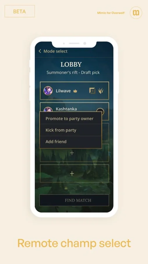 Accept invites, select your roles, accept the queue and pick a champion. All from your mobile!