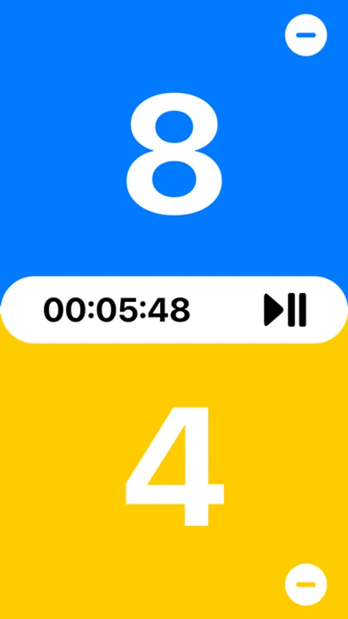 Just tap the side that scored to increase their score on the scoreboard! Pause or Start a new game anytime.