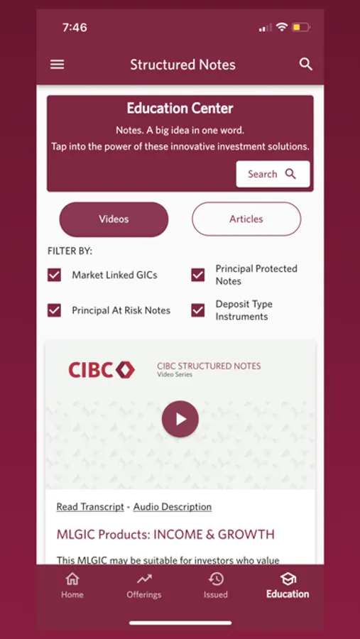 • Access the Education Centre with videos and articles to help you understand Structured Notes and Market-Linked GICs