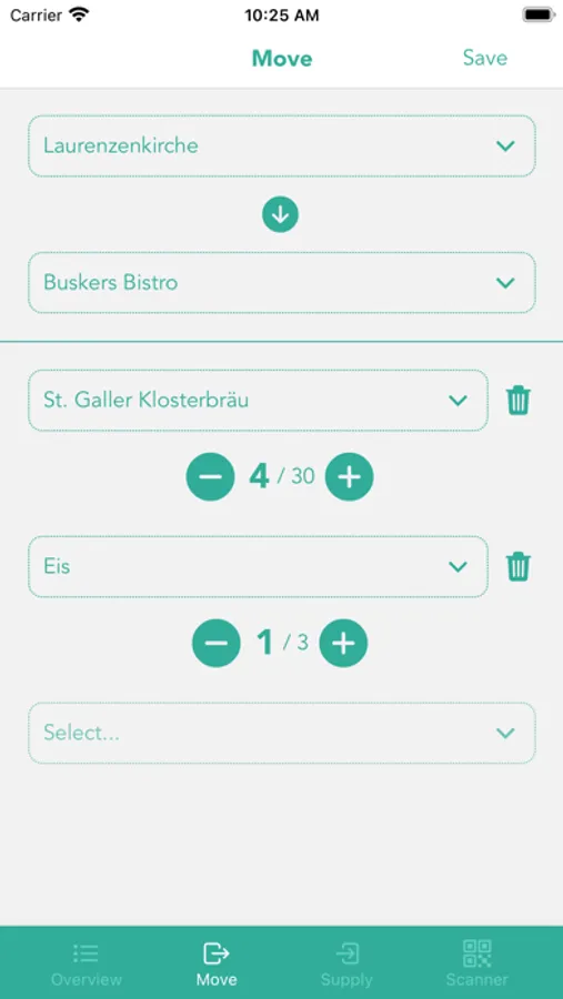This app provides both a vendor view that allows tracking stock in a single location as well as a logistics view that gives you an overview of the whole event's situation.
