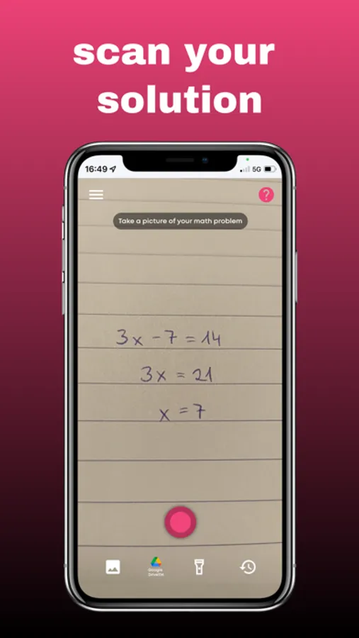 Scan: Scan your solution paths with M.O., upload a picture from your gallery or directly from Google Drive.