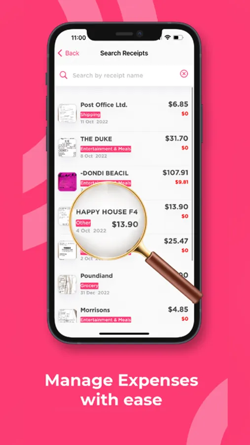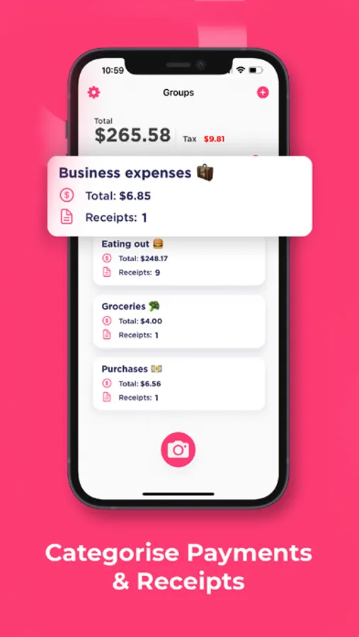 ● Create expenses of receipts such as Grocery, Shopping, Entertainment, Business Expenses, Travel Expenses, and more.