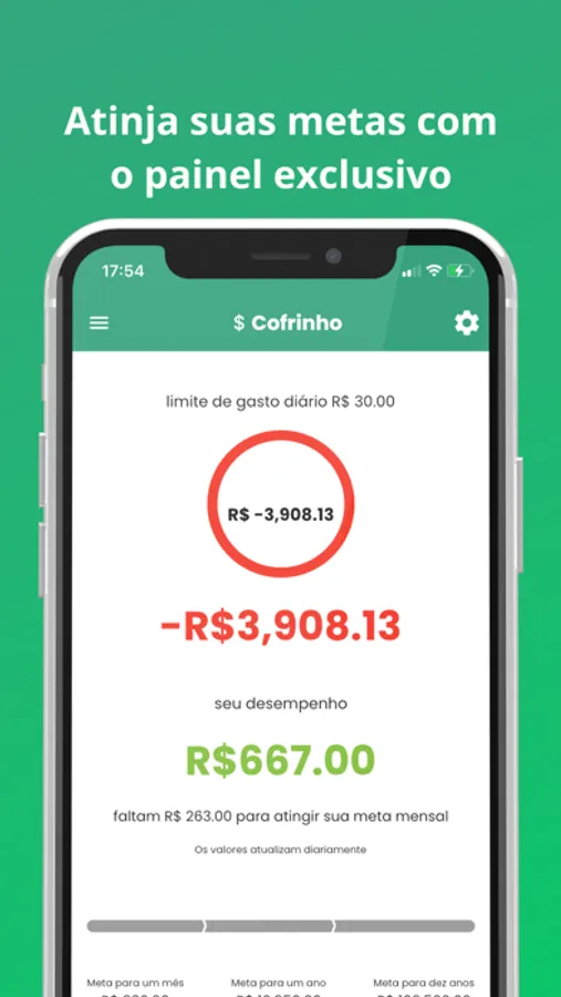 O valor do cofrinho só muda quando o dia acaba, por isso não se preocupe se suas metas não estão mudando