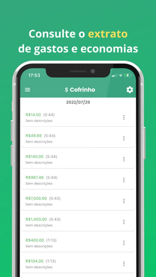 O valor será adicionado o seu "cofrinho" diário, para que você possa informar suas despesas mais tarde