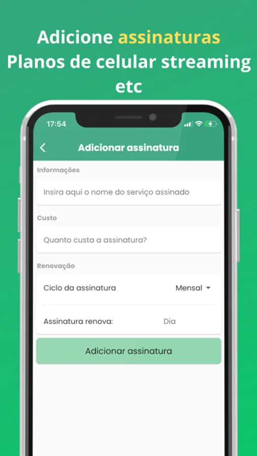 Também é possível adicionar assinaturas que serão descontadas com o decorrer do tempo