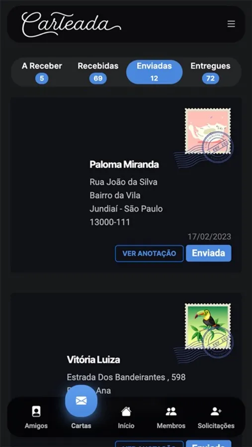 O Carteada fornece o um sistema fácil para você poder compartilhar seu endereço de forma segura e apenas com quem você quiser!