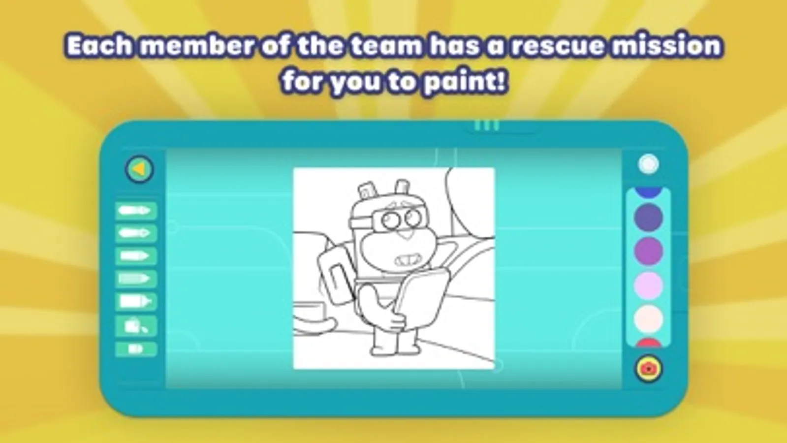 Join the team and help color in the fantastic rescue scenes to trigger the video rewards - to the briefing room!