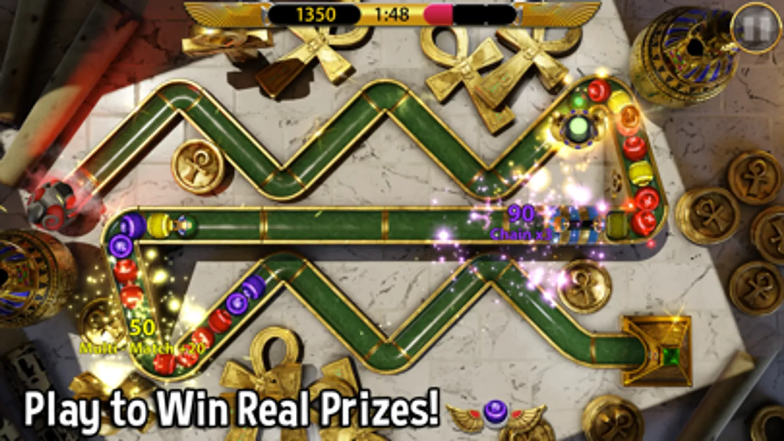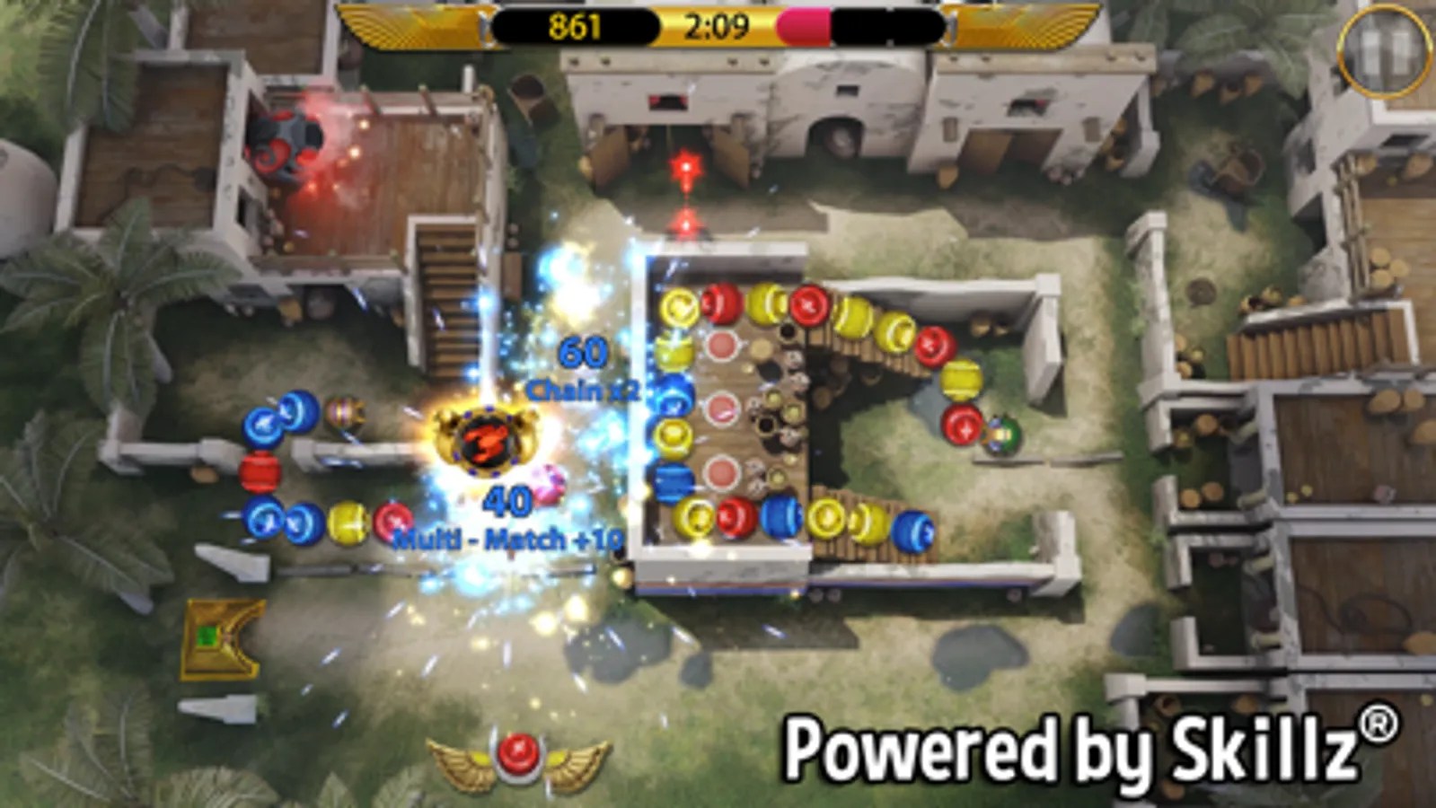 Luxor Clash combines the award wining classic match 3 marble-shooter created by MumboJumbo, LLC with the Skillz® fair competition and player-matching platform provided by Skillz, Inc.