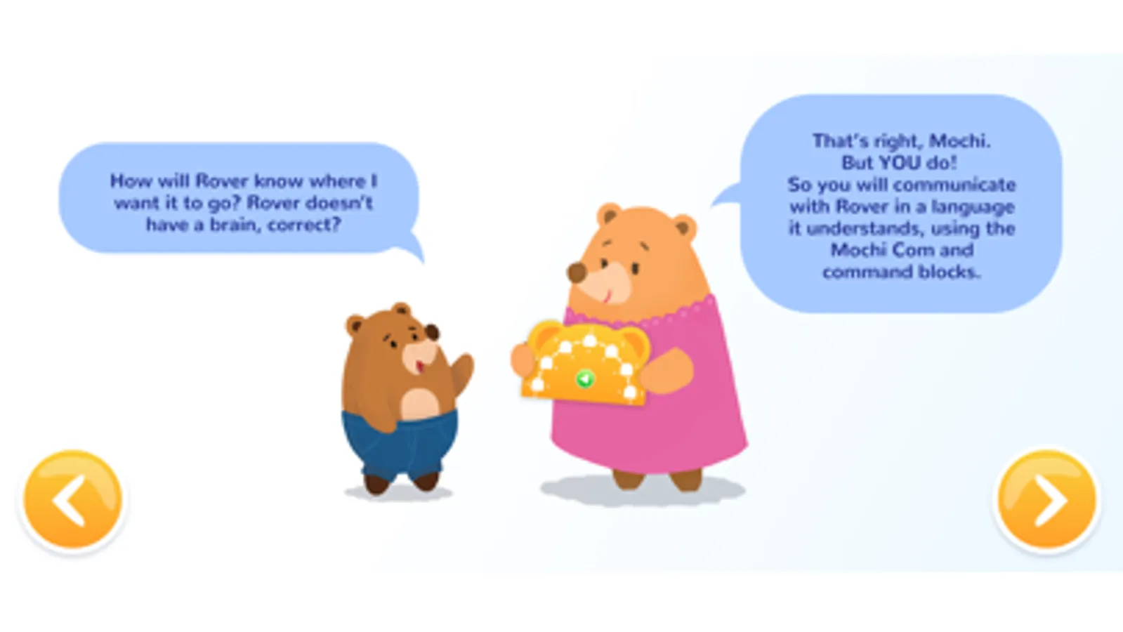 With the Mochi app, children will listen to stories about fun subjects such as Planets, Dinosaurs, Bugs, and Shapes. Then they can retell the story, using the app to code the robotic Rover around their story map! Along the way, they will practice coding concepts such as sequences, loops, and functions. But first, your child can transform their Rover into a spaceship, a safari jeep, a sailboat, and many other fun ways to get around. They can even attach LEGOs to their Rover!