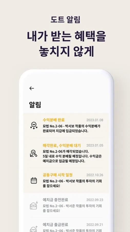 소유권 – 보유 작품, 소유권 그리고 수익 분배 내역까지 한눈에 확인할 수 있어요.