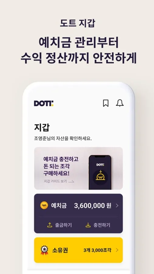 예치금 입금, 출금 – 수수료는 횟수 상관없이 도트에서 지원해드리겠습니다!