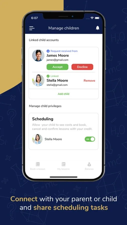 Parent-Student connections: Link with your child and manage or delegate their bookings.