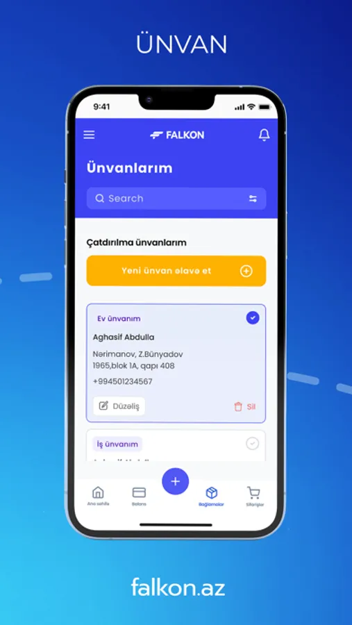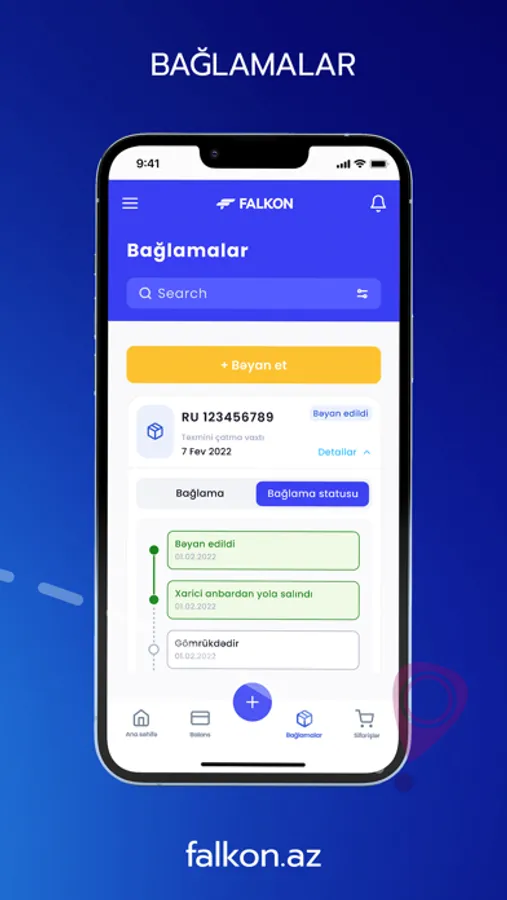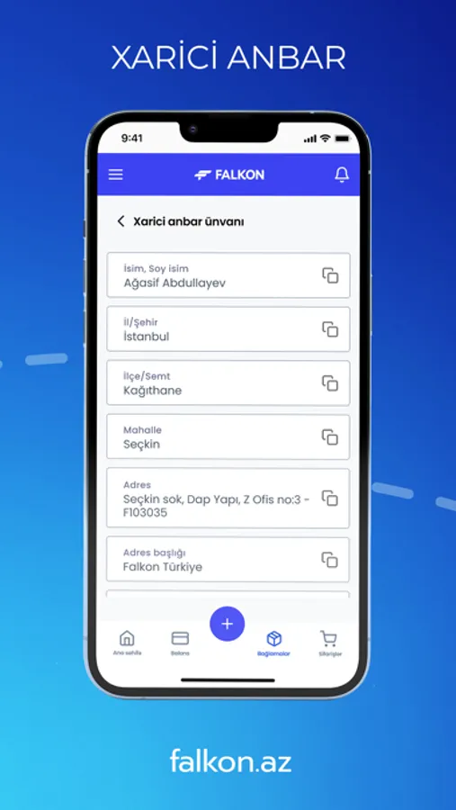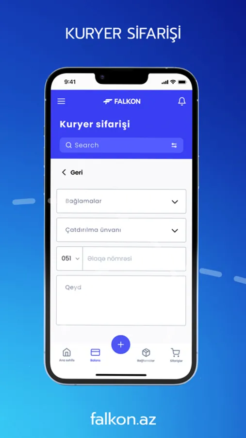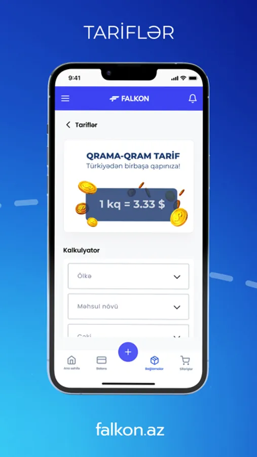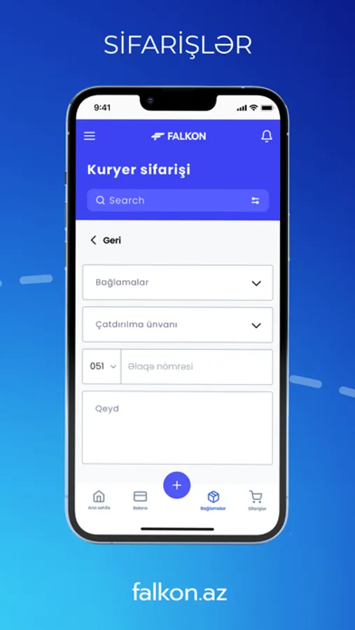 Falkon karqo şirkəti Türkiyədən sifarişlərin Azərbaycanın istənilən ünvanına çatdırılmasını həyata keçirir. Falkon express karqo şirkətinin mobil tətbiqi ilə siz bütün sifariş və çatdırılma əməliyyatlarınızı həyata keçirə bilərsiniz.
