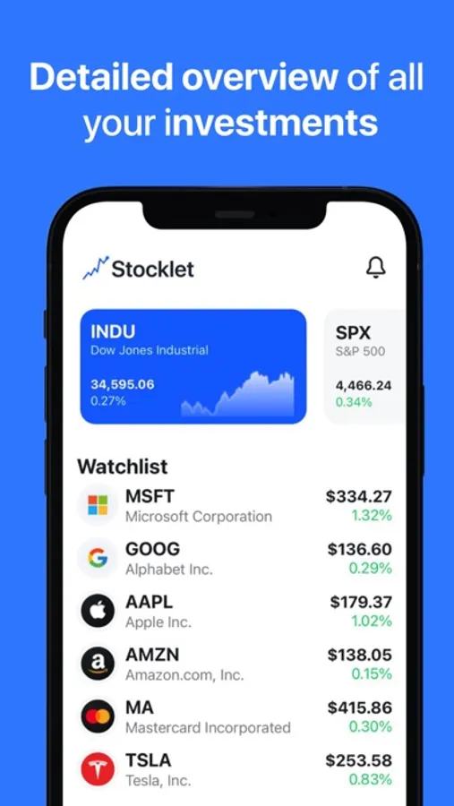 Keeping track of your stock investments can quickly become overwhelming. Especially if you have a very diversified portfolio. Stocklet makes it easy for you to find the information that's relevant to you.