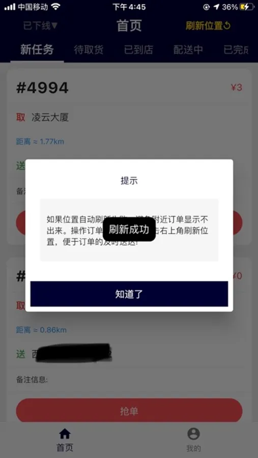 拍立送骑手端、便于骑手进行订单的配送处理。