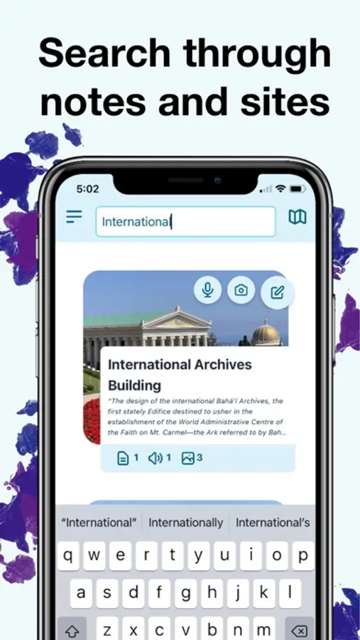 Take photos and audio recordings within the app to keep them organized with a site or written notes.