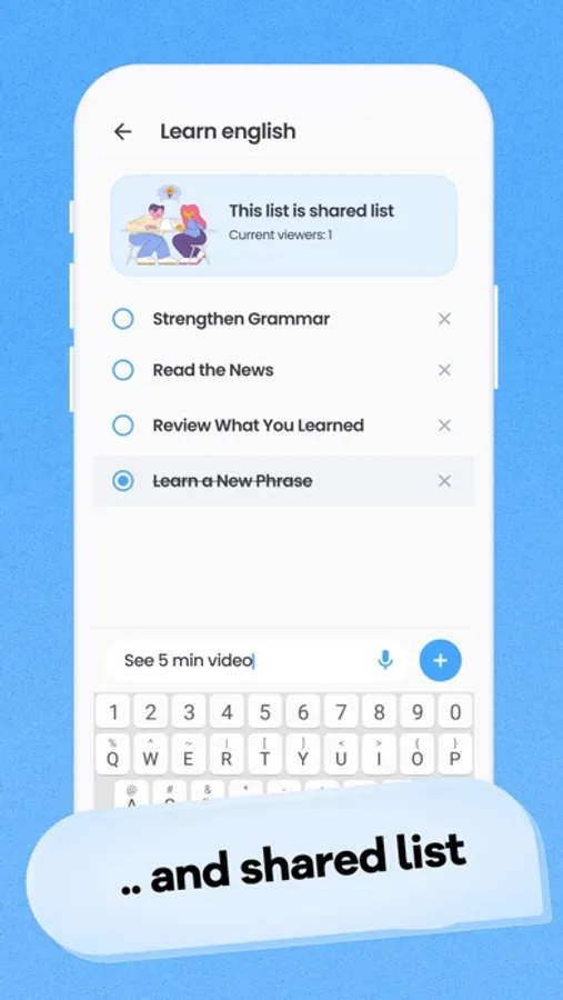 - Share your list with your partner and check through your to-do items at the same time using our real-time sync feature!
