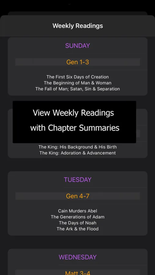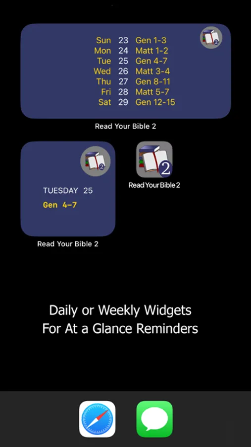 A simple widget app designed to take you through the Bible in 52 weeks, reading alternately each day from the Old Testament and New Testaments. (View the entire plan from within the Settings) Included are chapter summaries so you can see what you'll be reading throughout the week. Simply tap on the Daily Reading displayed within the app & it will bring up the Weekly Readings with the chapter summaries. This app does not include a Bible: just install the Widget - we prefer the weekly (medium widget) - and tap on it once a week to update the readings. The small widget (daily) is also available. Either way, you have a reminder right on your phone that quickly shows you what you're reading. It's best to start on a Sunday but start anytime to become familiar with the world's best-selling book. This app does not include a Bible.