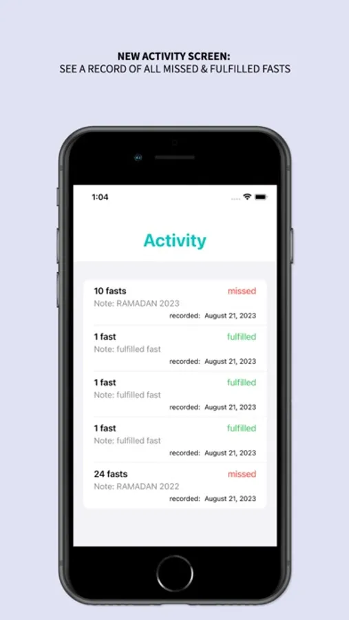 Simply input the number of fasts you have to make up. The app is going to remember the number of days for you, that is, whenever you open the app, the number of days is going to be in front of you. Once you have fasted, you can easily go to the app and change the number of days left for you to fast by tapping on a button on the screen.