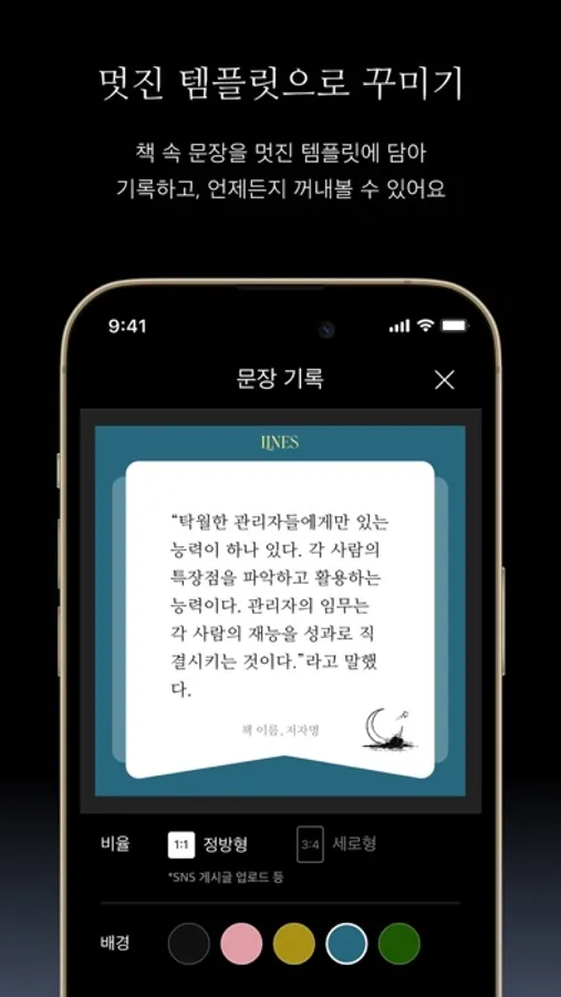 책 속 문장을 손쉽게 기록하고 공유할 수 있는 라인스!