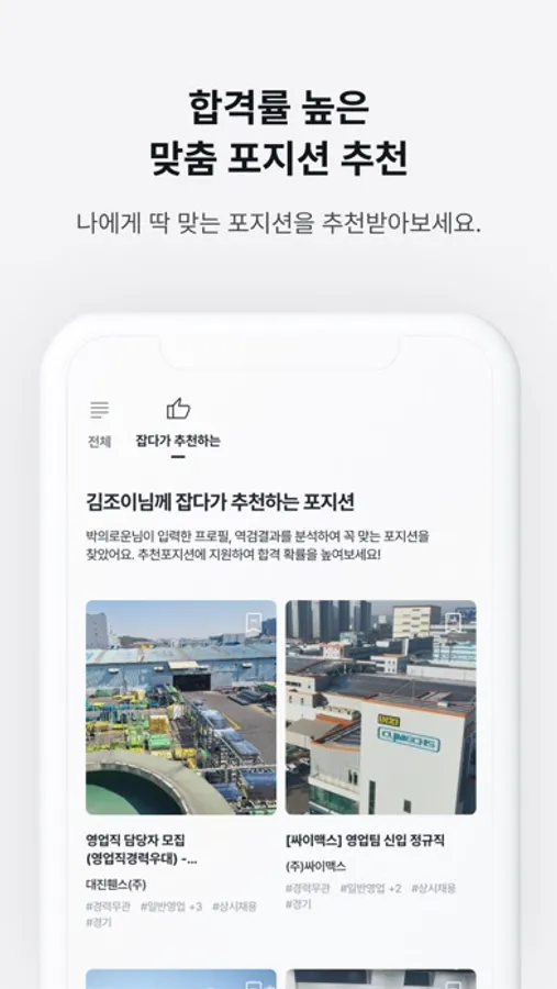 내 선호와 역량에 딱 맞는 포지션 추천 제공받을 수 있어요.