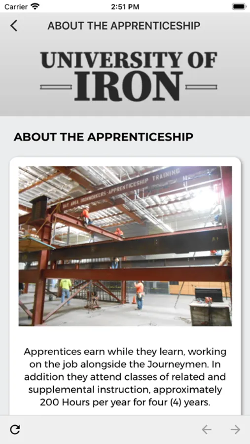 The Ironworkers Apprenticeship mobile app is designed to educate, engage and empower our Members. This app is to be used as a tool to better understand the benefits available to our Members working in the Industry. This app is only available to Ironworkers Apprenticeship Members.