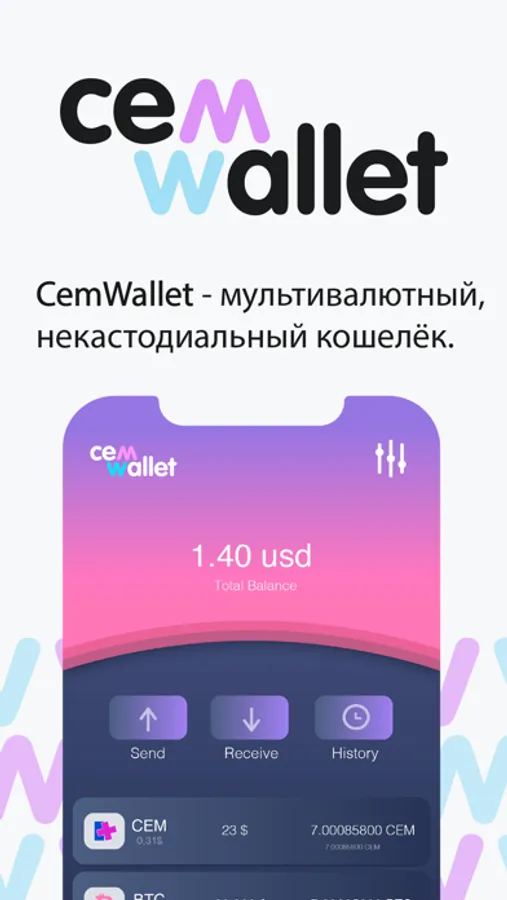 CEM Wallet is a safe non-custodial multi-currency wallet with which your keys and assets always remain under your supervision. With our application, you can store and manage your assets in a decentralized way.