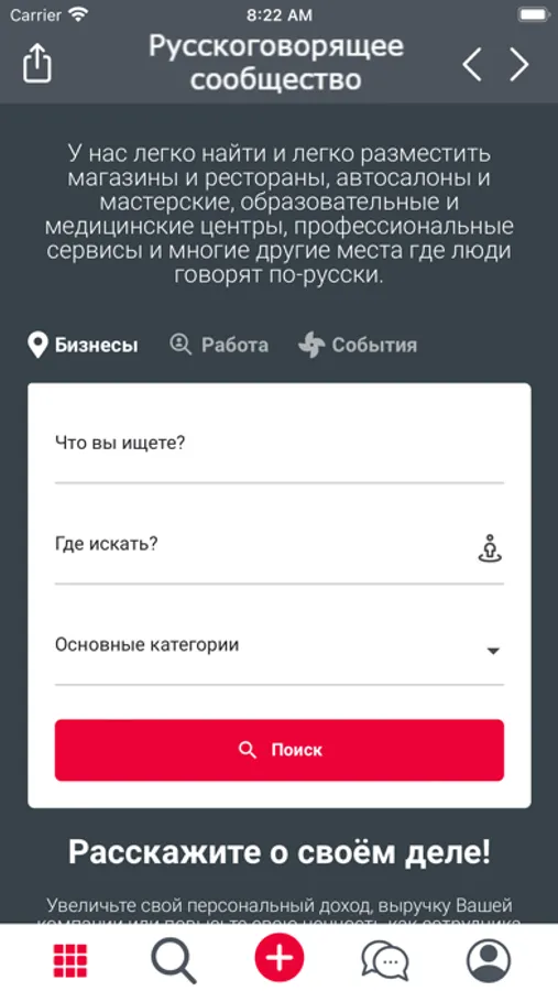 Присоединяйся к нам! Расскажите о себе или о своём бизнесе и люди которые живут или оказались рядом с Вами смогут узнать о том что Вы делаете и смогут обратится к Вам. Получите новых лояльных клиентов для себя и своего бизнеса или покупателей для компании где Вы работаете.