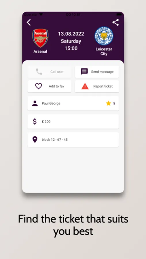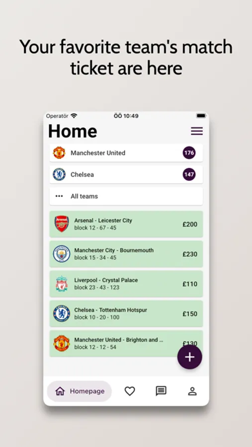 The fastest and safest way to transfer your ticket. Premier Ticket application is a platform that brings buyers and sellers together. Premier Ticket application allows you to find all the Premier league, UEFA Europa league and Champions league match tickets at affordable prices. You can easily transfer your ticket to other users and you can support your team.