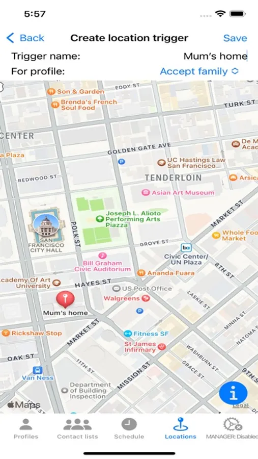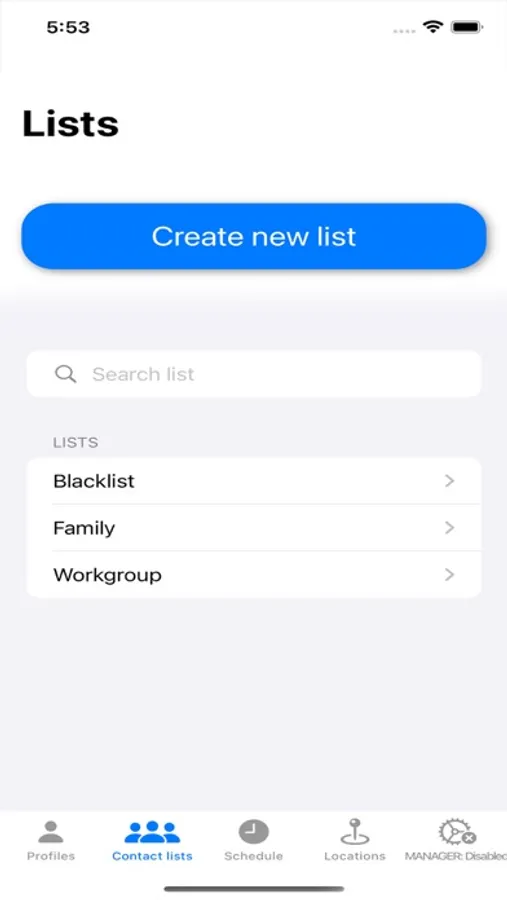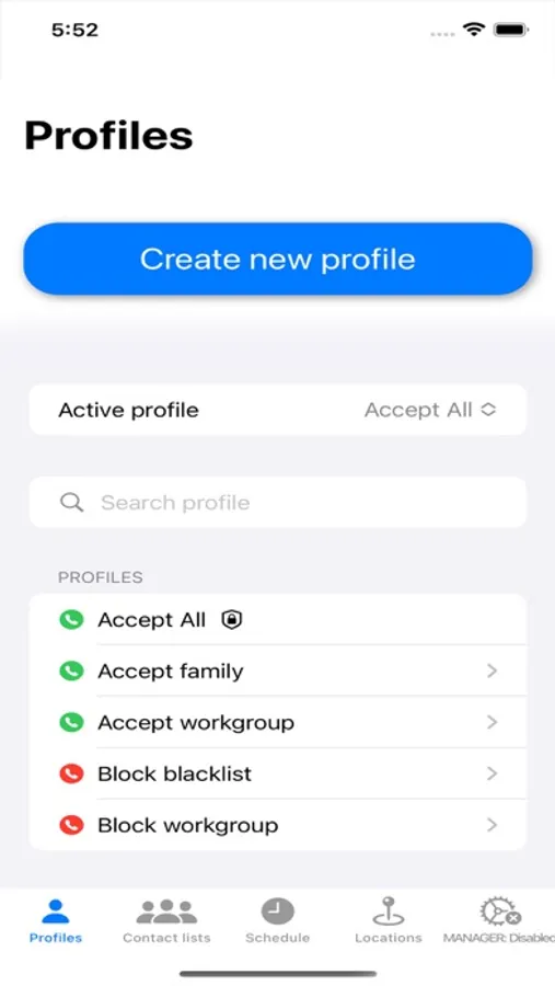 This app lets you create different call filtering profiles for every occasion. Profiles work with different configurable contact lists. You can choose whether to accept or reject calls from the currently active contact list. The app lets you create a schedule to switch between different profiles. You can create location triggers to change profiles automatically when you are in specific location region.
