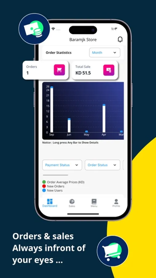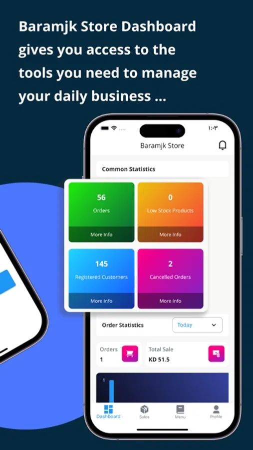 Baramjk Store allows access to your business information anytime / anywhere through your device. Features include Manage Orders, Send Payment Links, Adding Categories, Adding Products, Access to All Users, Sales / Pricing and Technical Support.