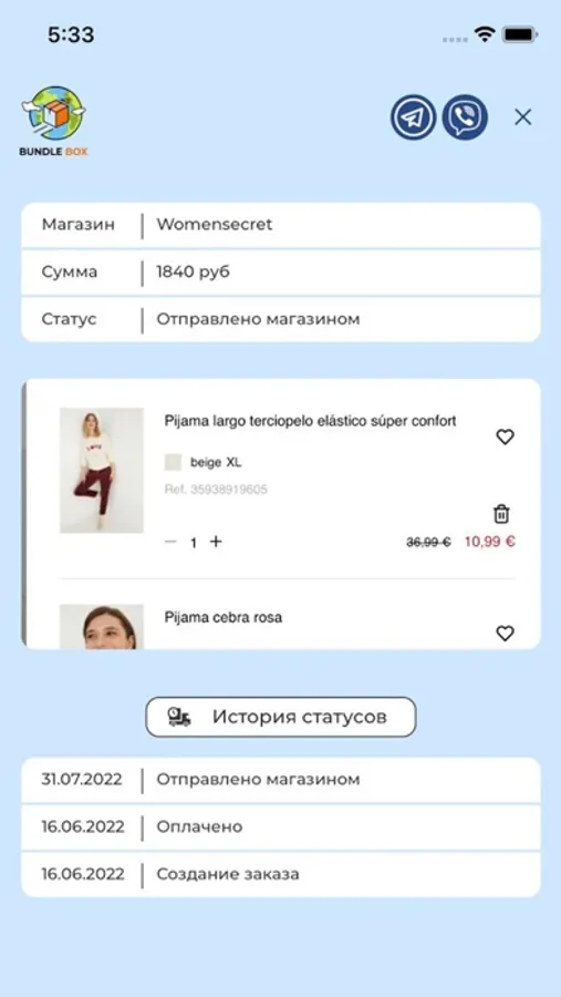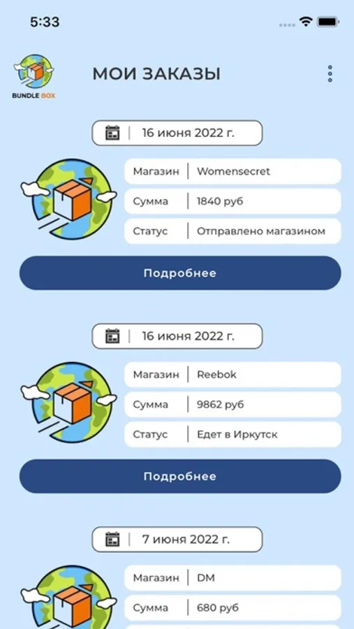 Приложение для отслеживания ваших заказов через сервис BundleBox.