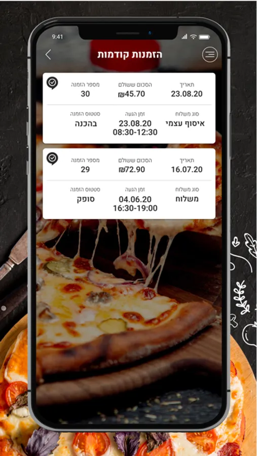 ניתן לבצע הזמנות ומשלוחים ישירות מהאפליקציה מודל'ה פיצה