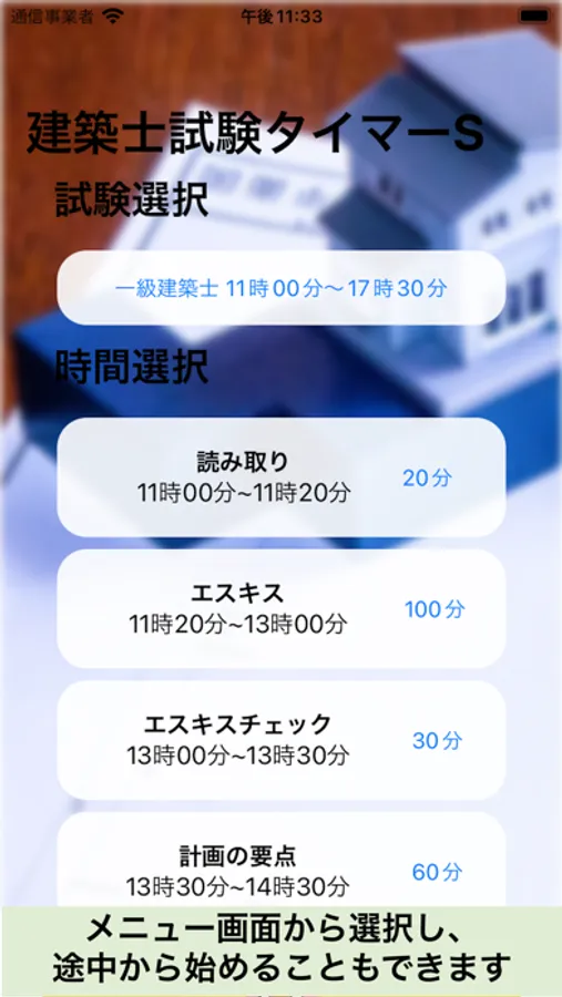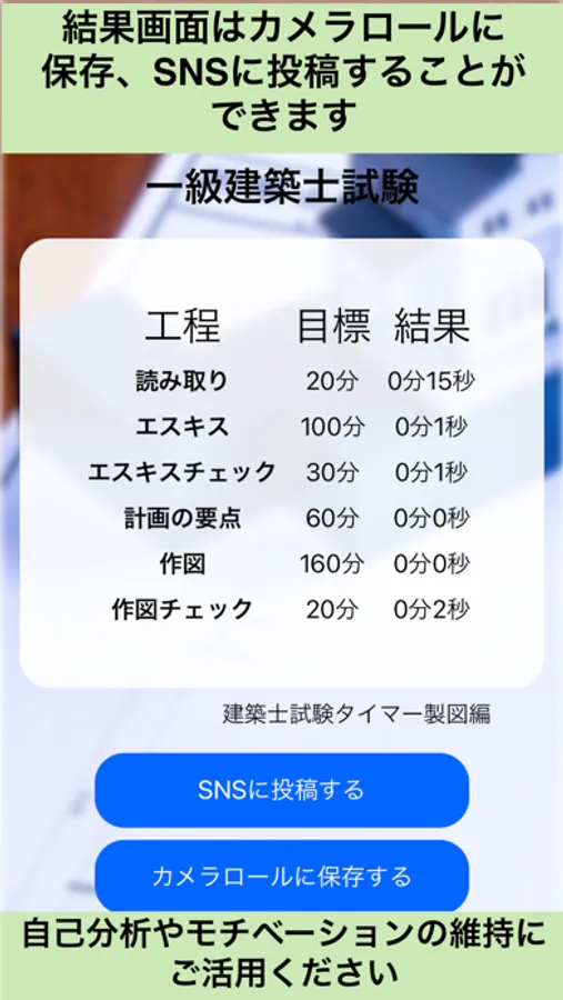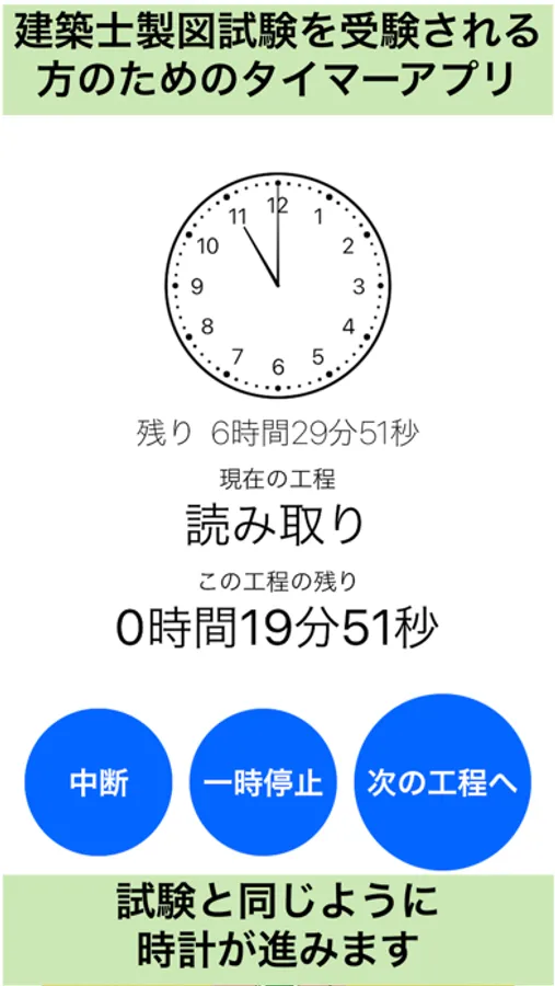 一級建築士、二級建築士の製図試験を受験される方のためのタイマーアプリです。