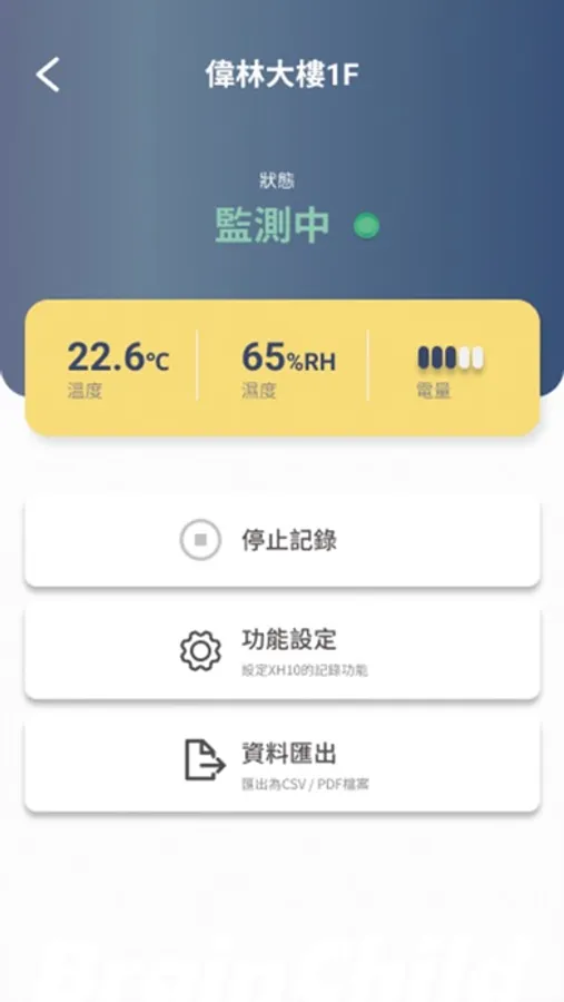XH Loger App 支援藍牙資料收集器Data logger_ XH10(BT),安裝軟體後可以透過藍芽連線進行XH10(BT)的溫溼度資料及基本設置。