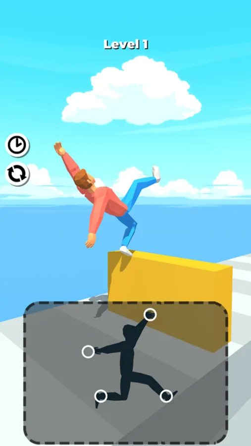 Take control of the fully physics-based character and control him by a 2D puppet projection. Move the pivots of the bones to set the correct pose to walk through the level and obstacles. Use different poses to avoid obstacles or speed up the character. The human will fully copy the projection of the 2D puppet and set up the right pose. A full ragdoll system brings you endless possibilities and surprises.