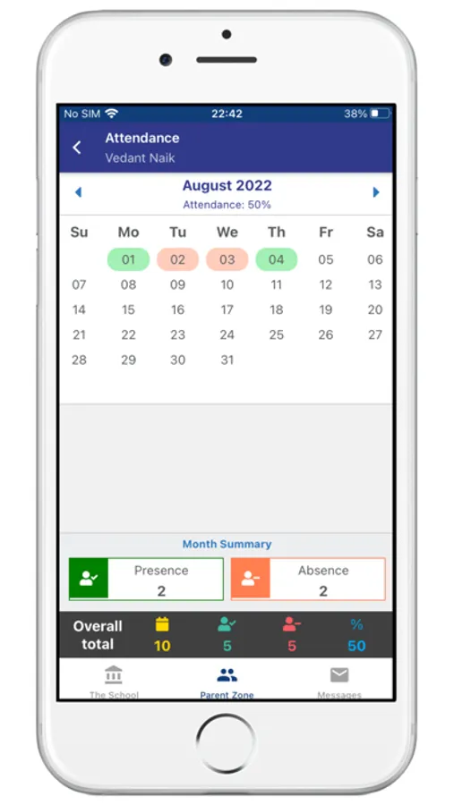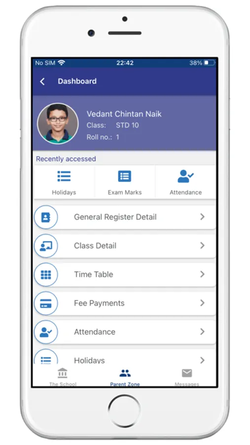 (2) Parent Zone - Parents can see their kid's personal records in this section. For example - General Register details, Time Table, Attendance, Exam Results, Fee Payment details, Home Work etc. Parents will have to register into the app using the same mobile number which is supplied for school General Register record.