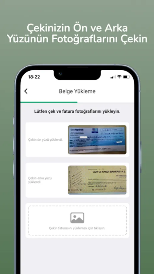Uygulamayı indirdikten sonra hızlı adımlarla hemen başvur sayfasından saniyeler içinde çekinizin üzerindeki kodu okutarak veya manuel bilgilerle Şeker Faktoring'e gönderin.