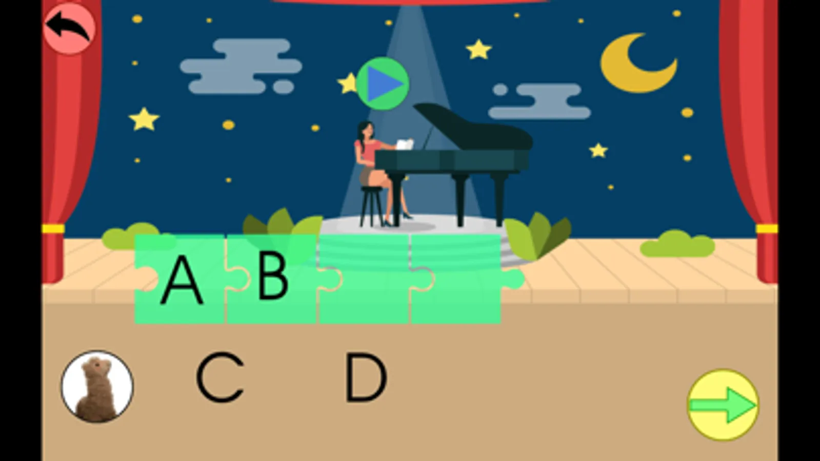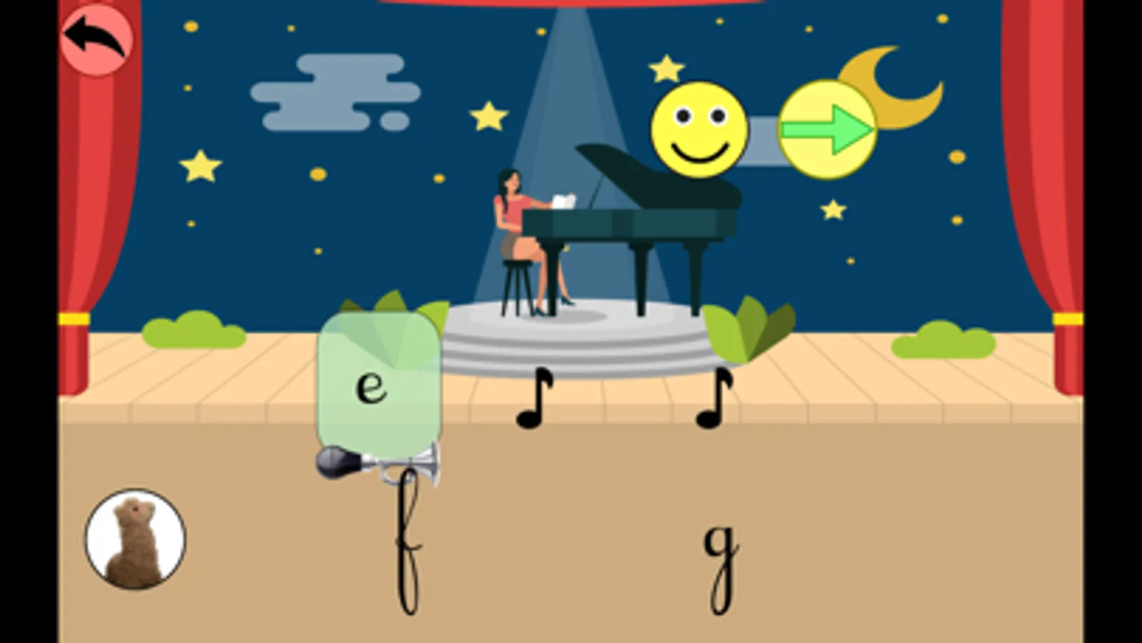 * aide possible : le bouton lecture lance la comptine avec un coup de klaxon à la place de la lettre demandée.