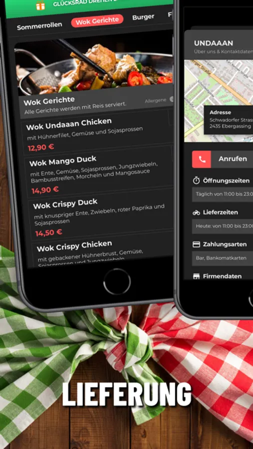 Undaaan in Ebergassing liefert jetzt auch zu dir nach Hause. Bestelle deine Lieblingsgerichte bequem und einfach online per Smartphone oder Tablet. Lieblingsgerichte aussuchen, einfach & Essen wird geliefert! Einfach Essen bestellen und liefern lassen!