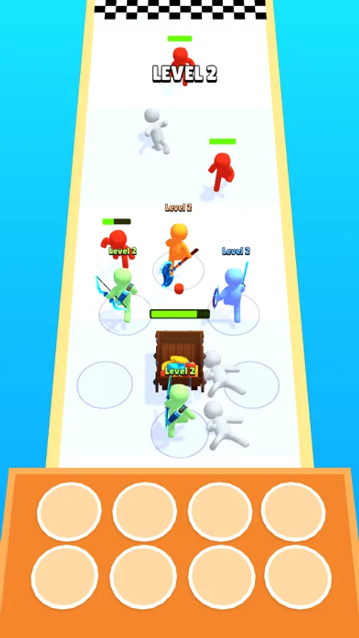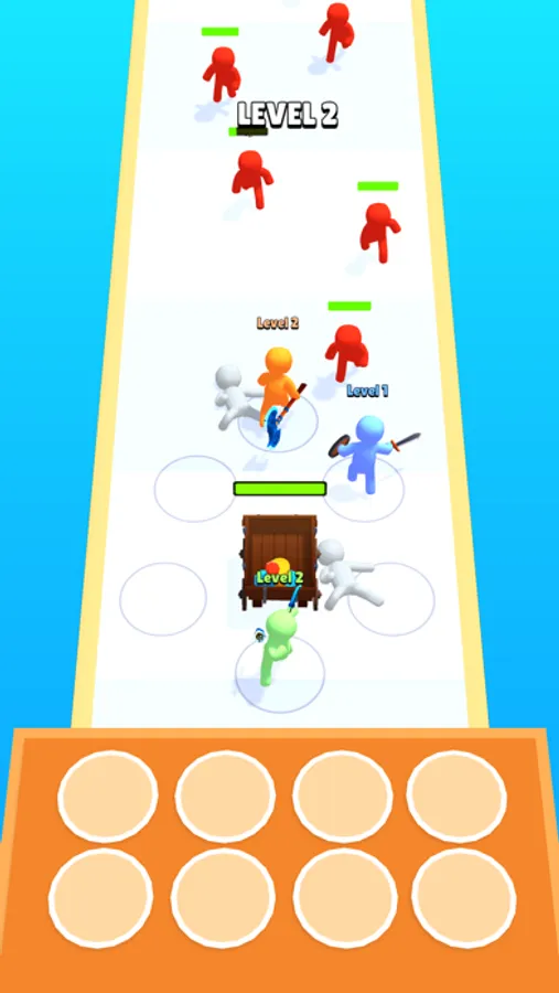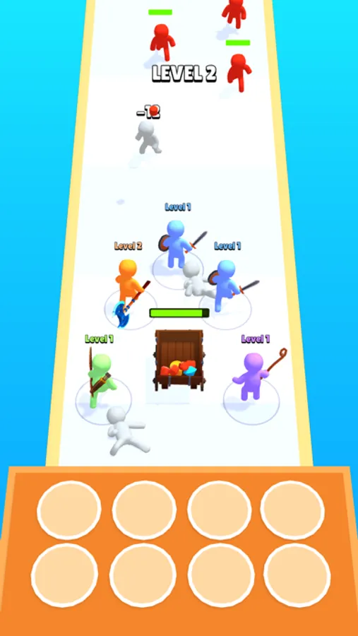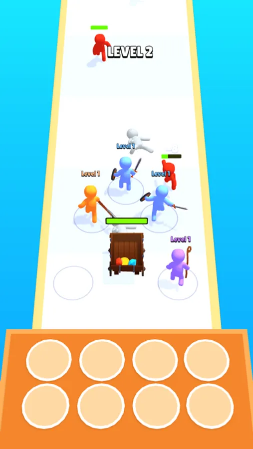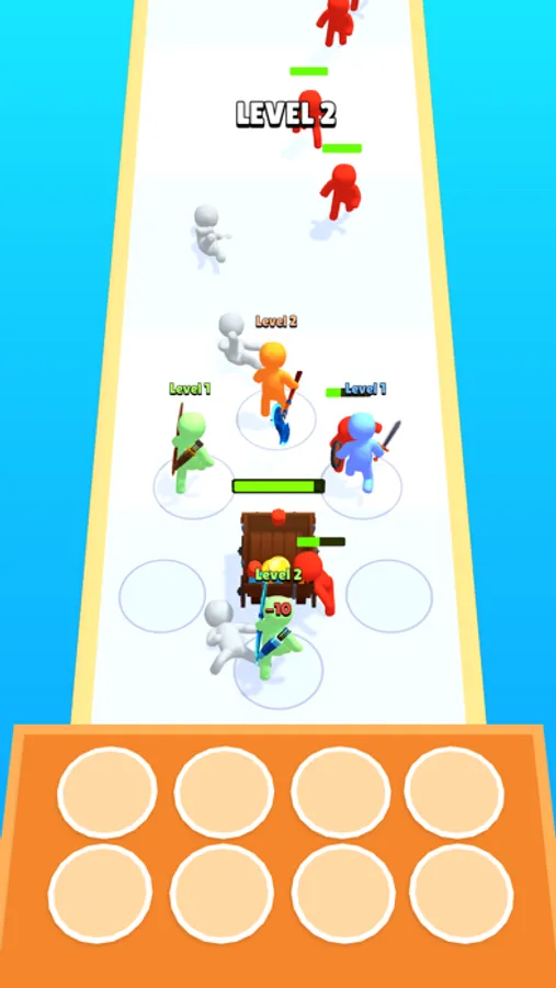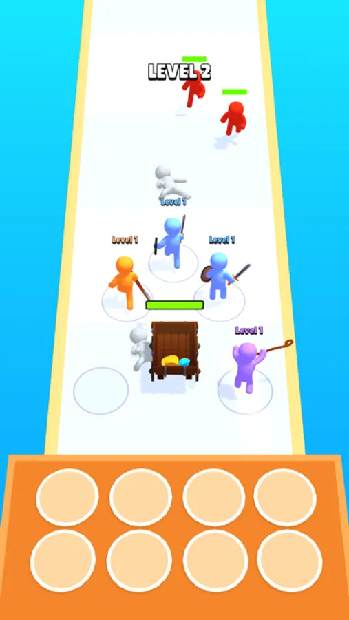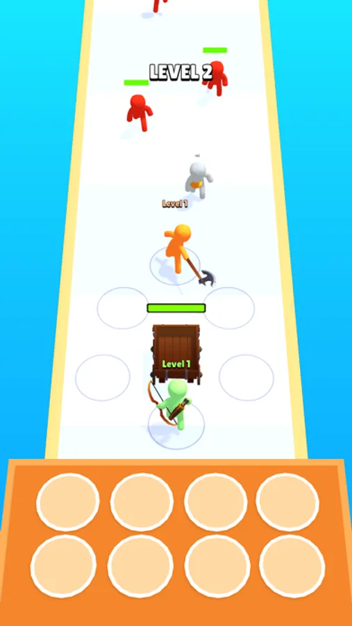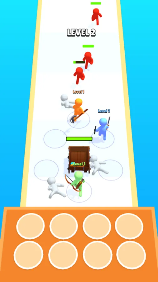 While enemys charging at your cart, pick a fighter and place them to face the enemy. Get new fighters and place them around the cart so that way you can make a batter stance. Don’t forget to merge same level and same type fighter to get more powerfull ones !!