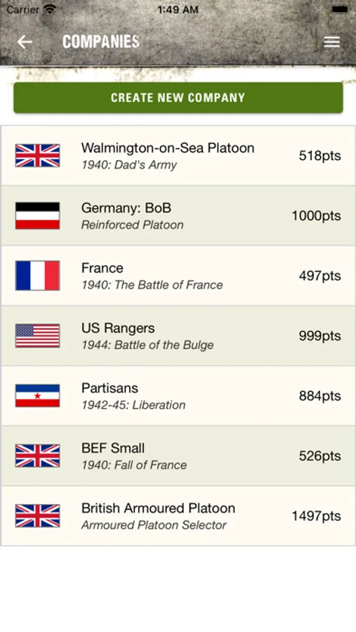 The Warlord Games list builder allows you to craft the perfect army list while sitting on the couch or standing at a bus stop. Thanks to the app's easy to use interface, you can put together an army list in minutes from a growing range of Warlord's back catalogue, including Bolt Action, Black Seas and Blood Red Skies. You can either reference your army lists in the app while playing, or better yet, export the list as a PDF and print it out in an easy to read format that you can take with you wherever you like to crush your enemies.