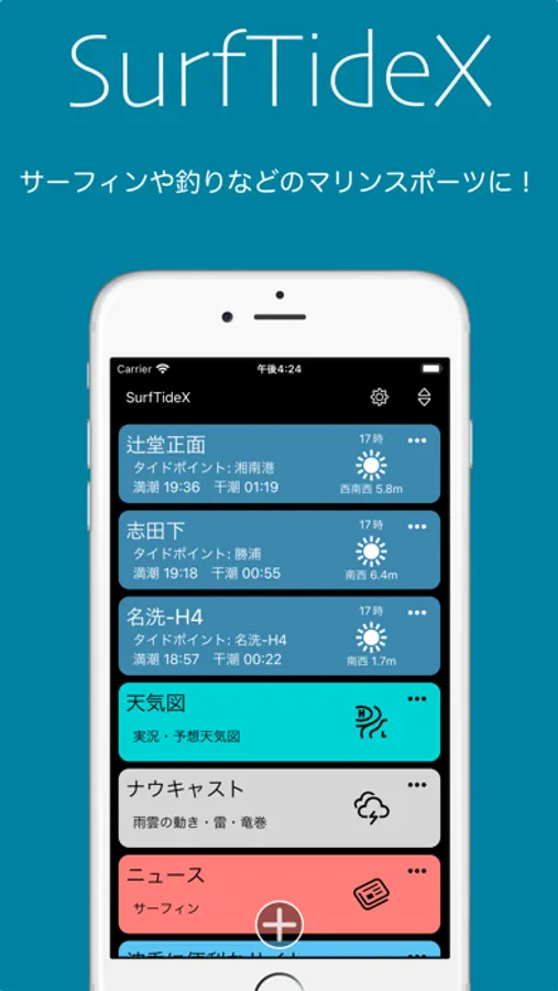 「SurfTideX」は波乗りや釣り等のマリンスポーツのための、タイド(潮汐)グラフや波情報/気象情報を表示できるアプリです。マリンスポーツのお供に是非使ってみて下さい。