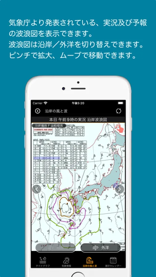 「天気図」と「ナウキャスト」カード及び、タイドポイントカードの「沿岸の風と波情報」は、気象庁サイトのデータを利用しています。気象庁のサイト構成が変わったり情報が更新されていなかったりすると、アプリで正しくデータを表示できなくなります。
