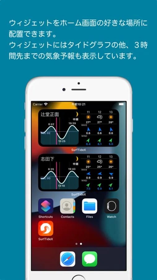 ウィジェットやアップルウォッチでタイド&気象情報を表示することもできます。