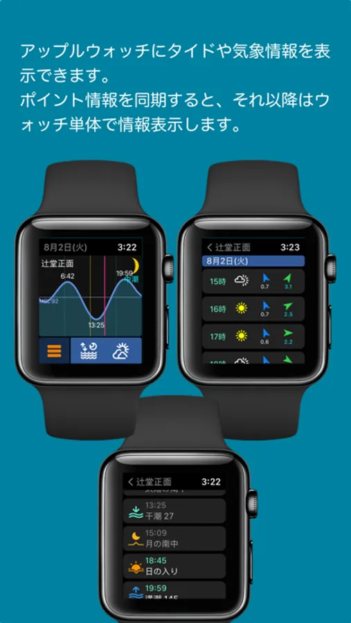 ウォッチでは、一度ポイント情報をiPhoneより取得すると、以降は単体でタイドと気象情報を取得できます。